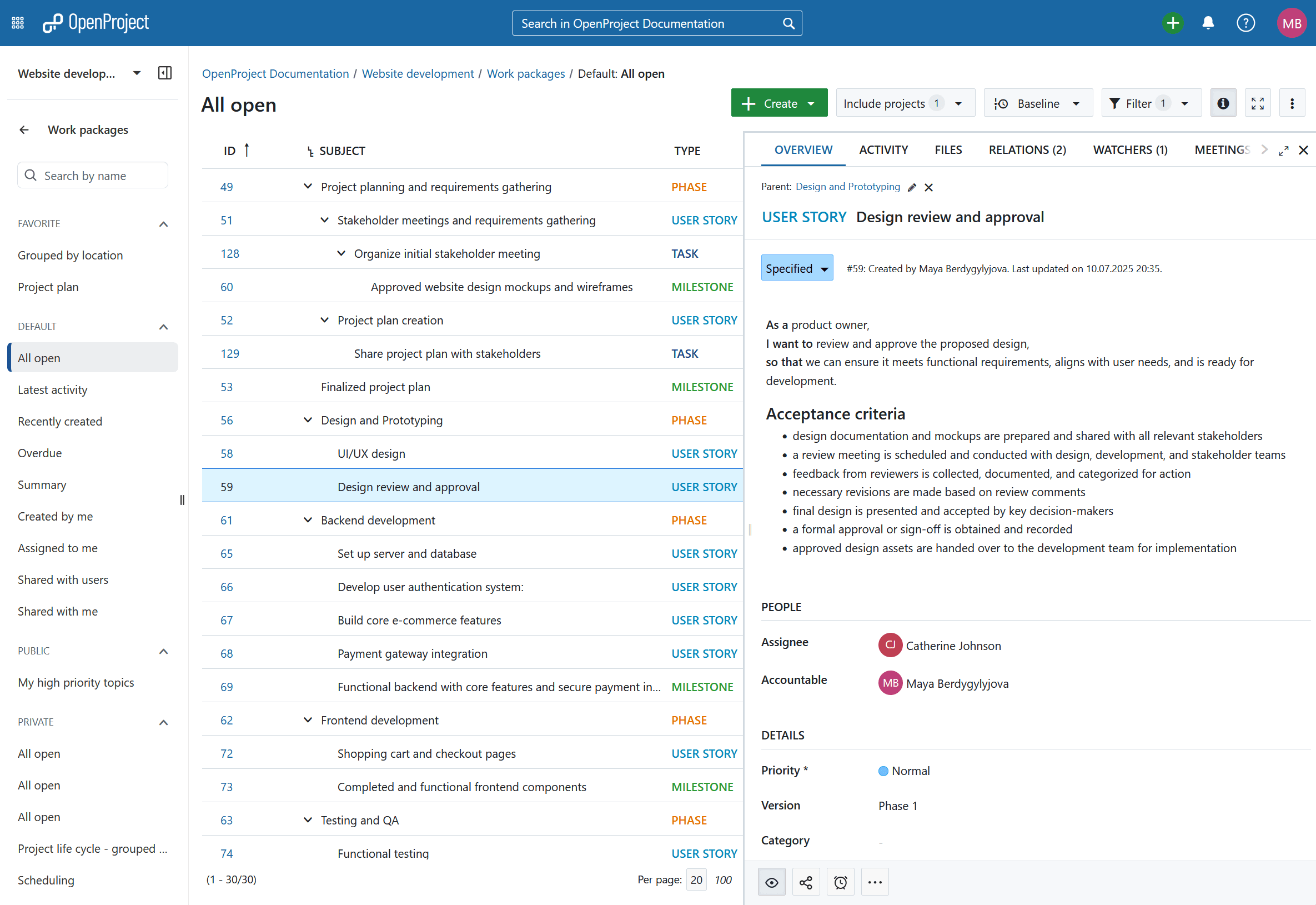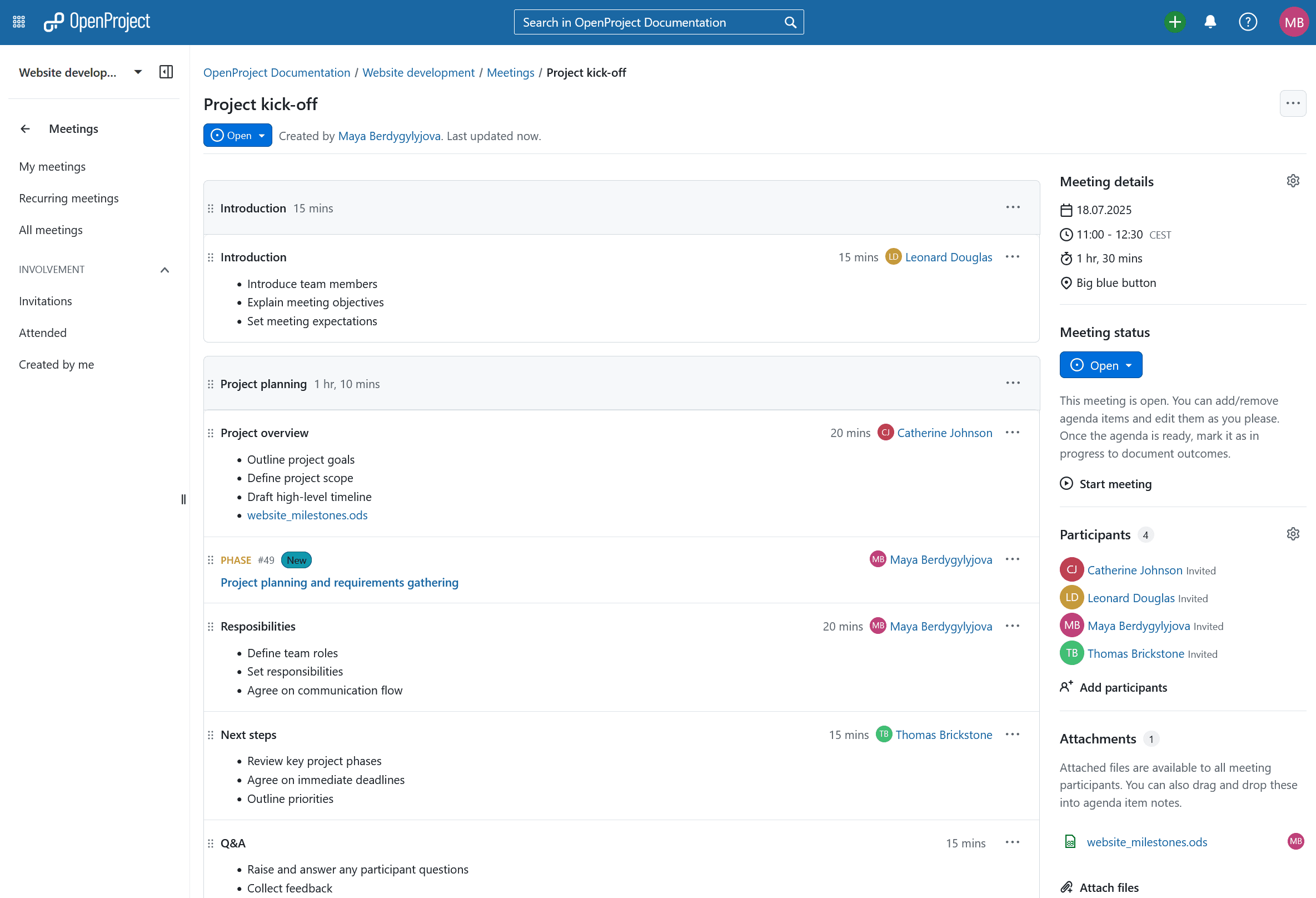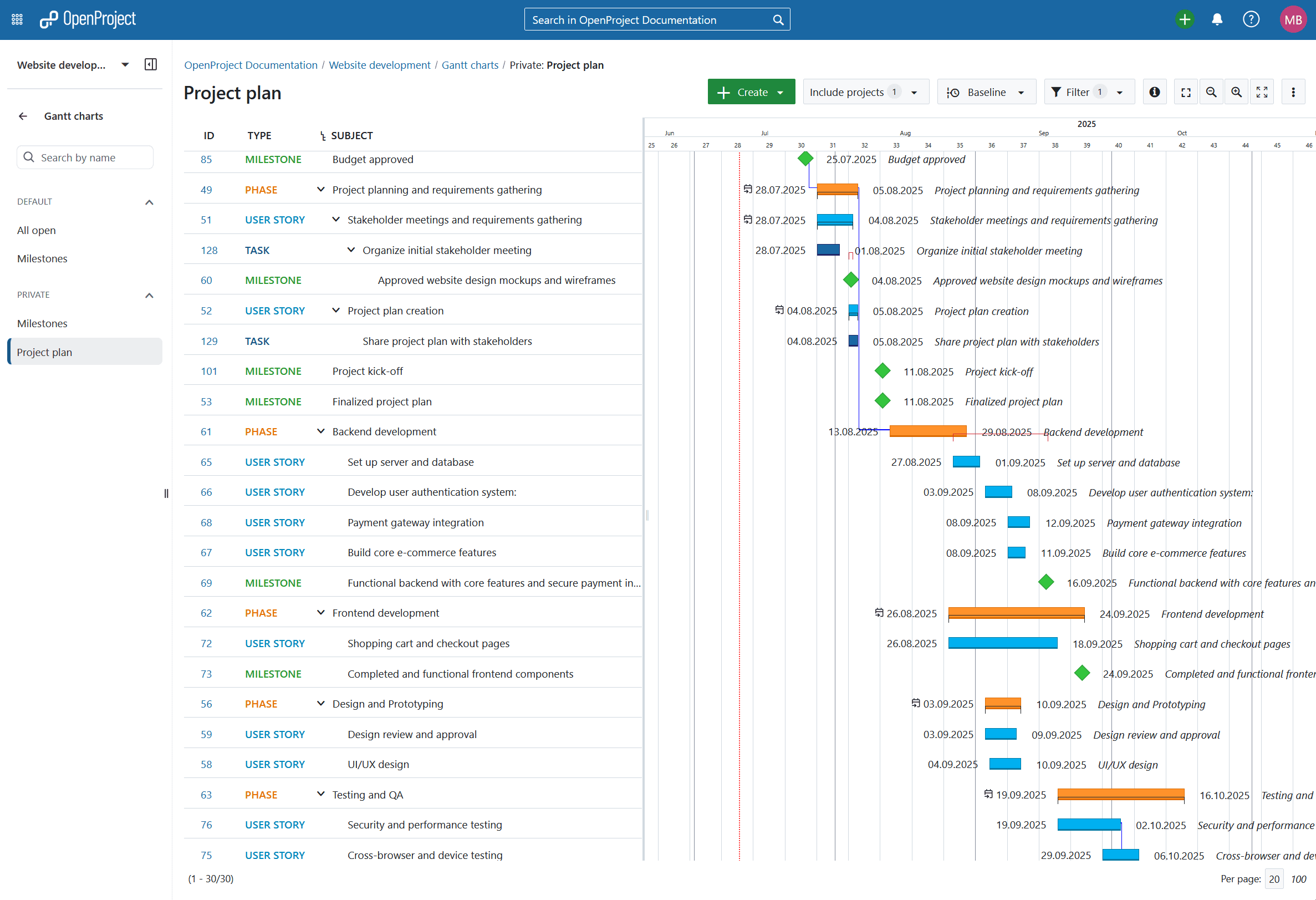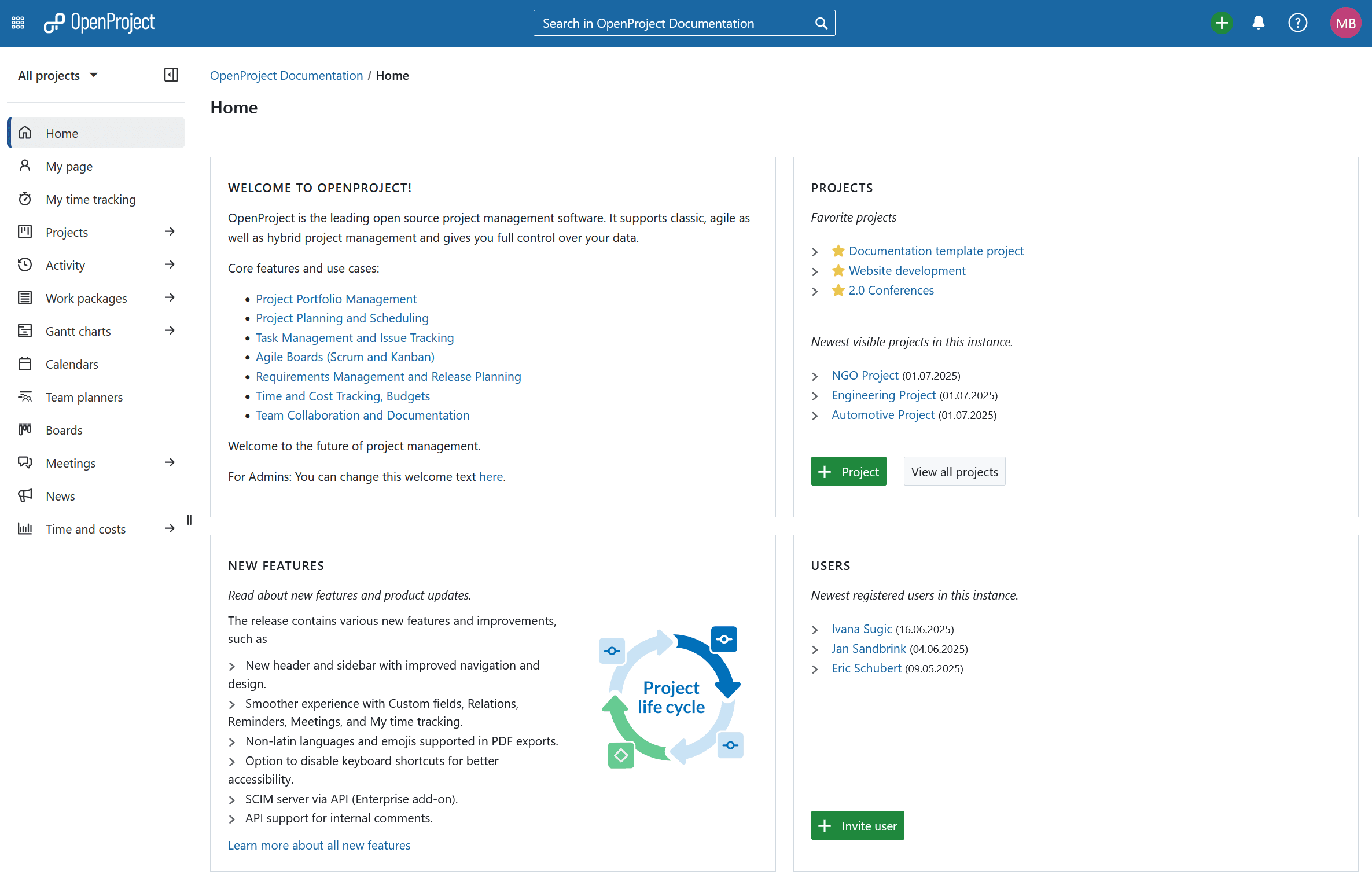 OpenProject ist eine web-basierte Projektmanagement-Lösung, welche speziell auf die Anforderungen der öffentlichen Verwaltung zugeschnitten ist. Sie unterstützt Projektplanung, Aufgabenmanagement, agile Workflows, Zeiterfassung und Projektportfolio-Management. Die Software kann in der eigenen Infrastruktur betrieben werden, sodass einsetzende Organisationen die volle Kontrolle über ihre Daten behalten. Zusätzlich bietet der Hersteller in ihrer Enterprise Cloud ein Hosting in einem Rechenzentrum innerhalb der Europäischen Union an, das gemäß der Datenschutz-Grundverordnung (DS-GVO) erfolgt. OpenProject entspricht den Anforderungen des BSI IT-Grundschutzes und wird kontinuierlich auf Basis der WCAG 2.1-Richtlinien getestet, wie im Prüfbericht dargestellt. OpenProject ist vollständig kompatibel mit der Deutschen Verwaltungscloud-Strategie (DVS). OpenProject ist Teil der Open Source Office- und Kollaborationssuite openDesk.