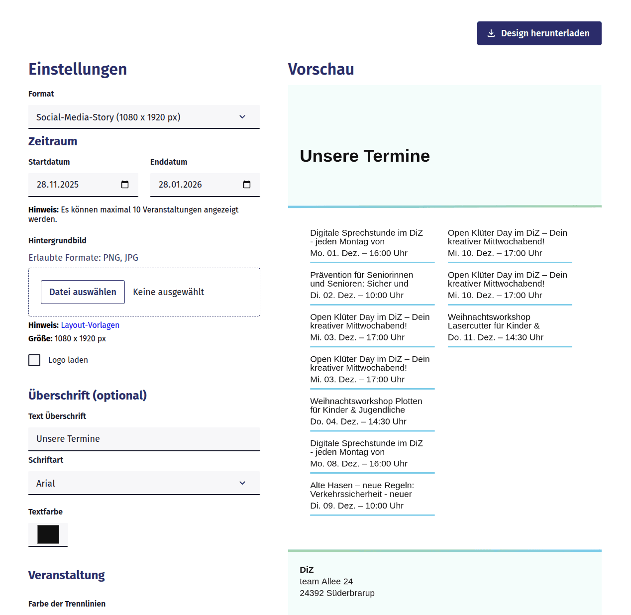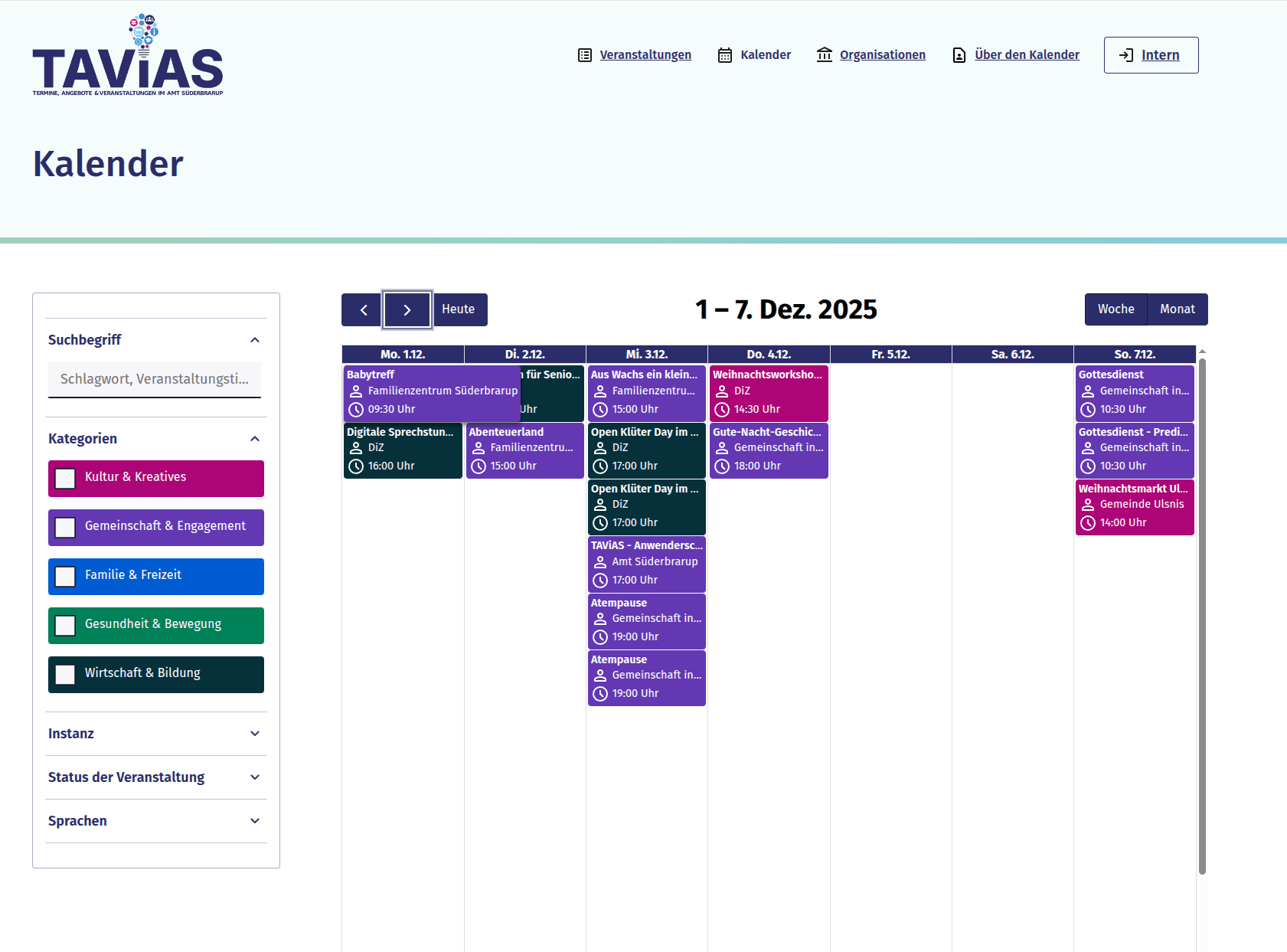 Der Smarte Gemeinschaftskalender ist eine Open-Source-Lösung, die darauf abzielt, die Planung und Kommunikation von Veranstaltungen in Gemeinden und Organisationen zu optimieren. Verschiedenste Funktionen und Automatisierungen unterstützen Veranstalterinnen bei der Verbreitung ihrer Angebote – Einzel- und Serientermine, iCal-Importe oder Kalenderintegrationen. Gleichzeitig gewährleistet die Integration unterschiedlicher barrierearmer Kommunikationskanäle – von Webanwendung über personalisierte E-Mail-Benachrichtigungen und Infotafelanbindungen –, dass alle interessierten Bürgerinnen, unabhängig von ihren technischen Fähigkeiten, über aktuelle Veranstaltungen informiert werden. Als offene Lösung ermöglicht unsere Softwarelösung eine dezentrale Vernetzung von Kalendern. Das bedeutet: Veranstaltungsdaten können nicht nur lokal, sondern auch (über-)regional über verschiedene Installationen geteilt werden.