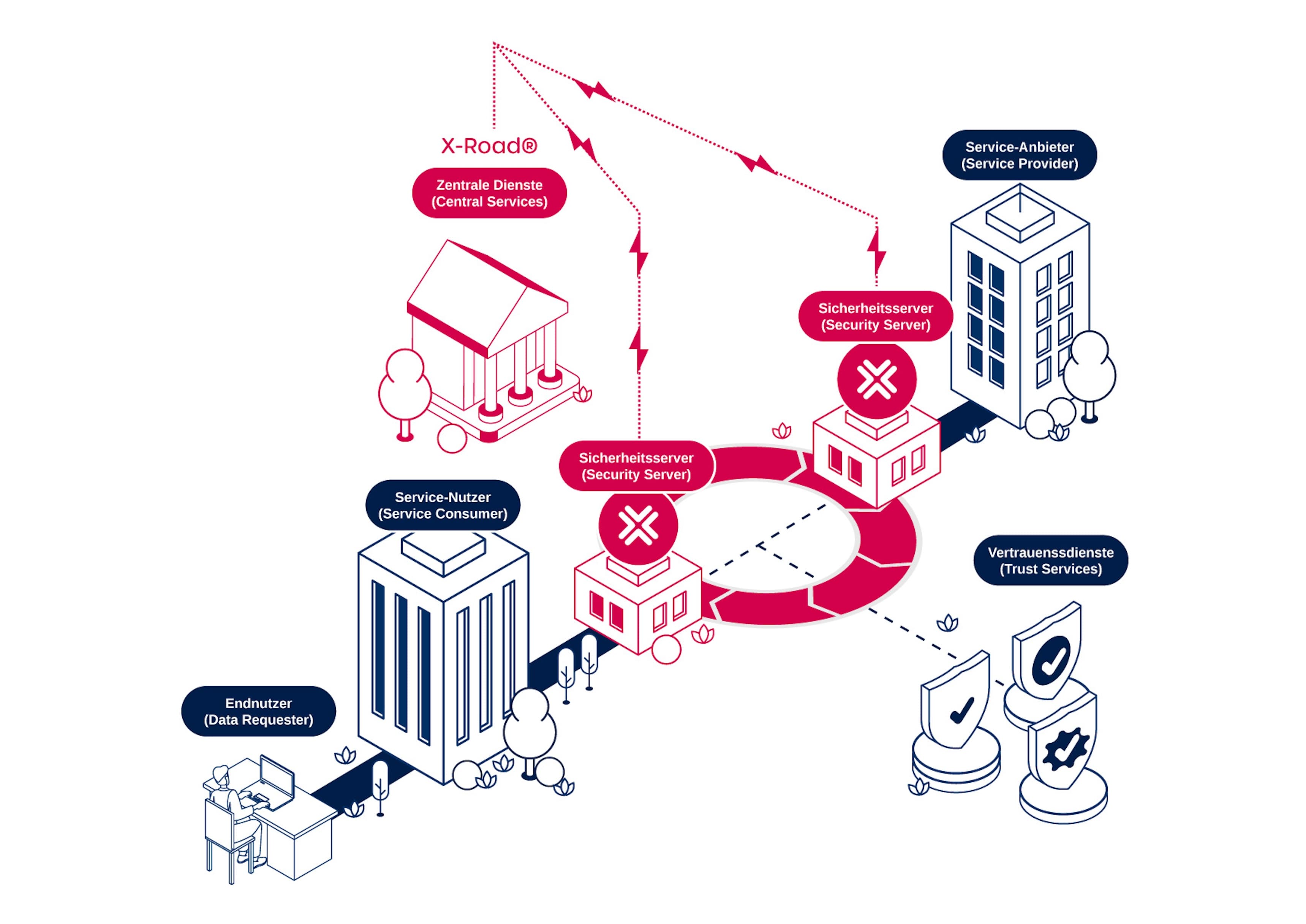 X-Road Schleswig-Holstein ist eine Open-Source-Plattform für den sicheren und standardisierten Datenaustausch zwischen öffentlichen und privaten Informationssystemen in Schleswig-Holstein. Die Plattform ermöglicht es Behörden, Organisationen und Unternehmen, Daten und Dienste über eine gemeinsame Infrastruktur auszutauschen, ohne zentrale Datenhaltung oder proprietäre Schnittstellen zu benötigen. X-Road wurde ursprünglich in Estland entwickelt und hat sich als internationaler Standard für interoperablen Datenaustausch etabliert. Ein zentrales Merkmal ist die dezentrale Architektur: Jede Organisation behält die Kontrolle über ihre Daten, der Austausch erfolgt verschlüsselt und nachvollziehbar über Sicherheitsserver. Alle Transaktionen werden protokolliert, was Transparenz und Vertrauen schafft. X-Road unterstützt zahlreiche Anwendungsfälle wie digitale Verwaltung, E-Government, Gesundheitsdaten, Bildung sowie Energie- und Umweltinformationen. Die Plattform trägt zur Digitalisierung der Verwaltung bei, steigert die Effizienz und reduziert Fehler. Sie ist flexibel, erweiterbar und erleichtert die Integration neuer Dienste und Partner. X-Road fördert die Zusammenarbeit zwischen Behörden auf allen Ebenen und unterstützt die Umsetzung gesetzlicher Vorgaben wie dem Onlinezugangsgesetz (OZG). Insgesamt bietet X-Road Schleswig-Holstein eine zukunftssichere, skalierbare und offene Lösung für den digitalen Datenaustausch und stärkt die digitale Souveränität des Landes.