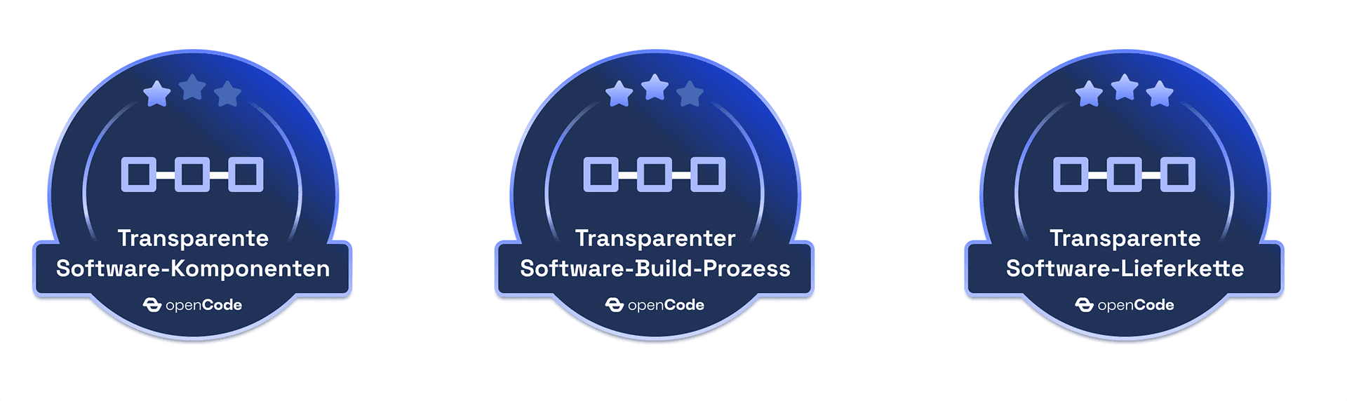 Die Lieferketten Badge bewertet die Transparenz und Nachvollziehbarkeit der Software-Lieferkette eines Projekts nach (SLSA-Standards). Sie gibt Auskunft darüber, wie gut dokumentiert und abgesichert der Weg vom Quellcode bis zum fertigen Artefakt ist. Die Badge umfasst Aspekte wie Projektdokumentation, Build-Provenance und kryptografisch signierte Attestierungen.