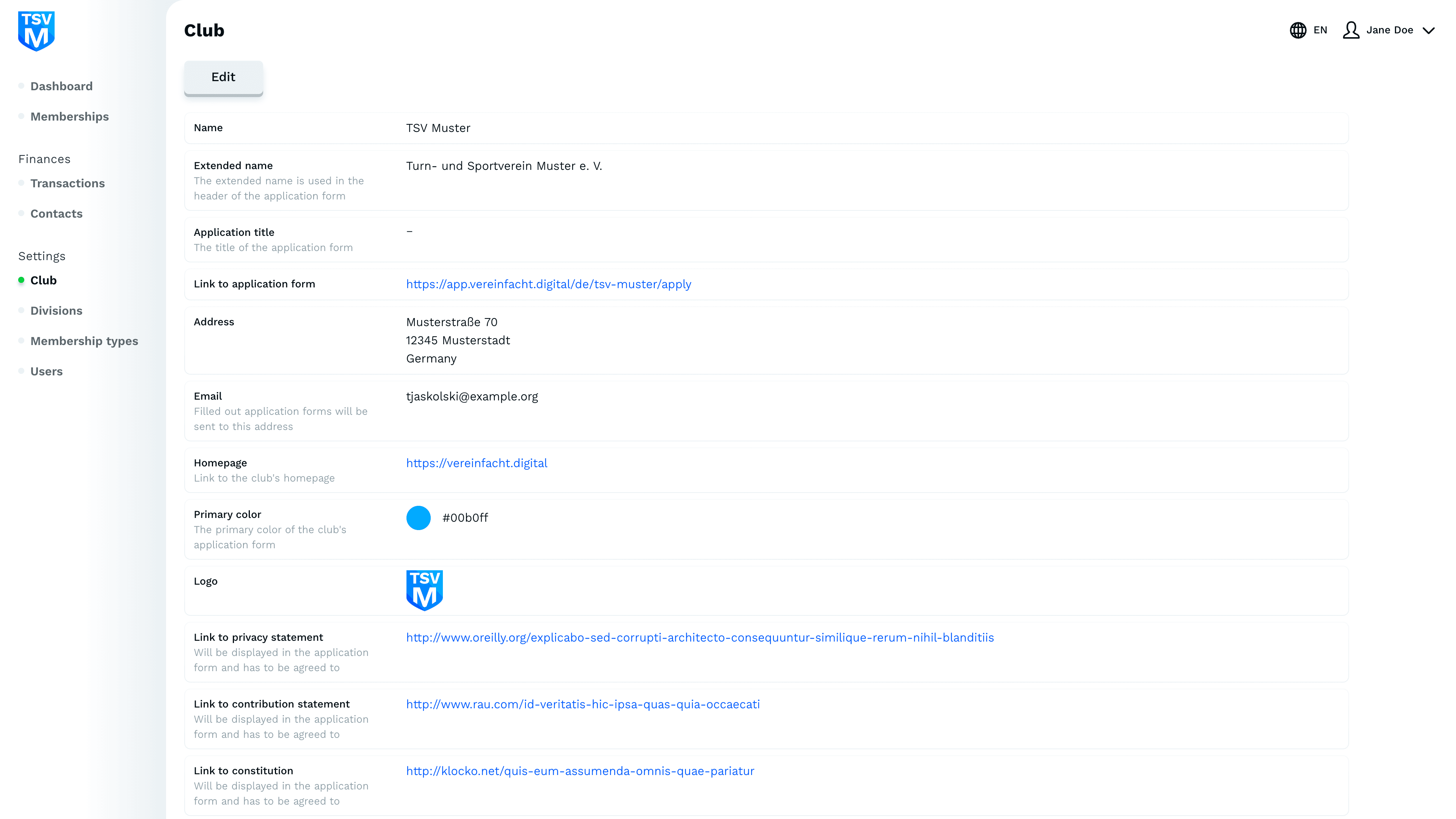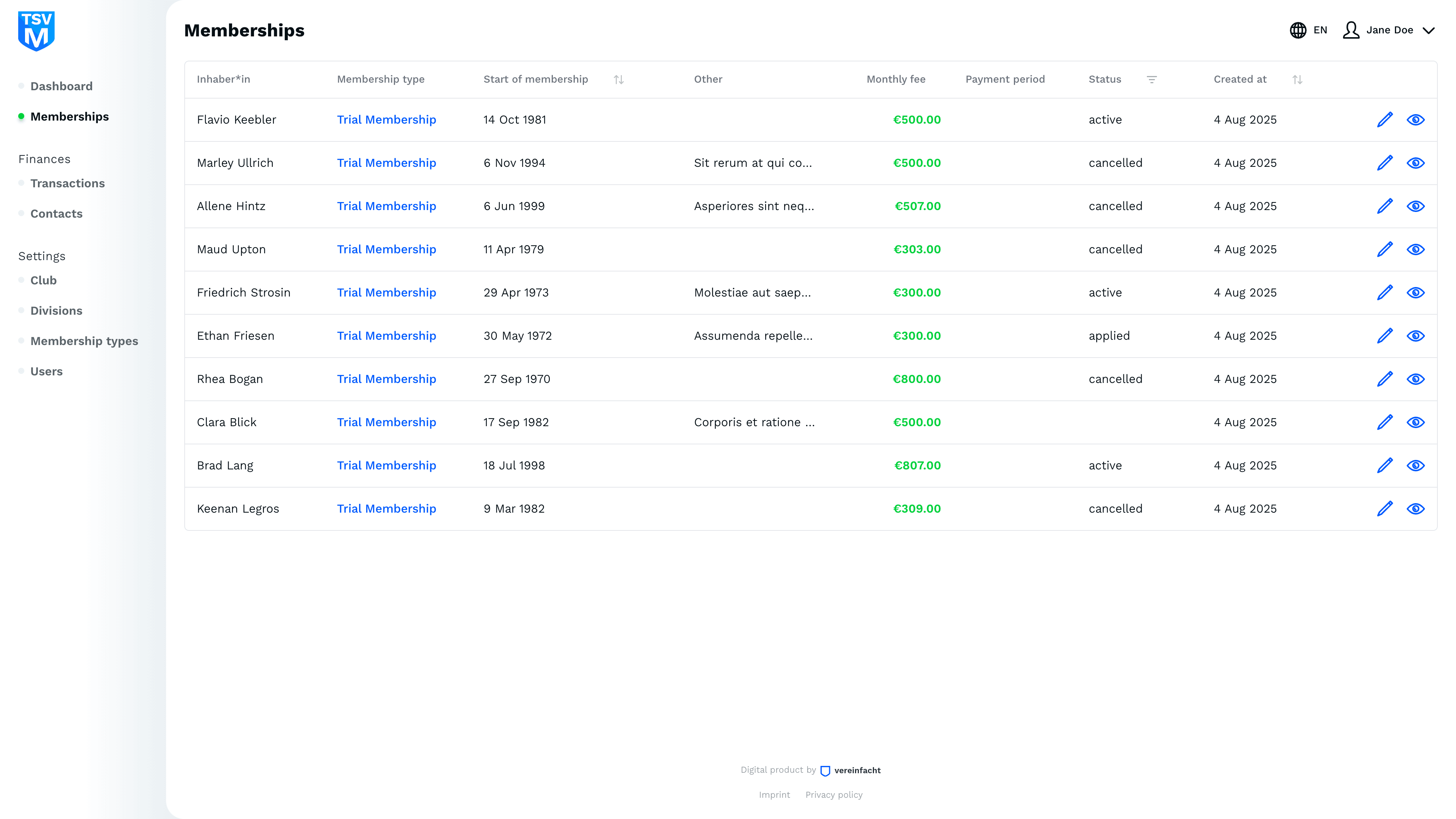 vereinfacht is an open‑source, web‑based club management software, designed to digitize core organizational tasks for nonprofit and volunteer-based associations. It replaces paper forms and manual processes with flexible, multilingual online membership applications, customizable to each club's branding, structure, and member‑type needs. It includes an descriptive management interface and is built on an open source tools and dependencies, supporting smooth integration and self‑hosting at no cost.